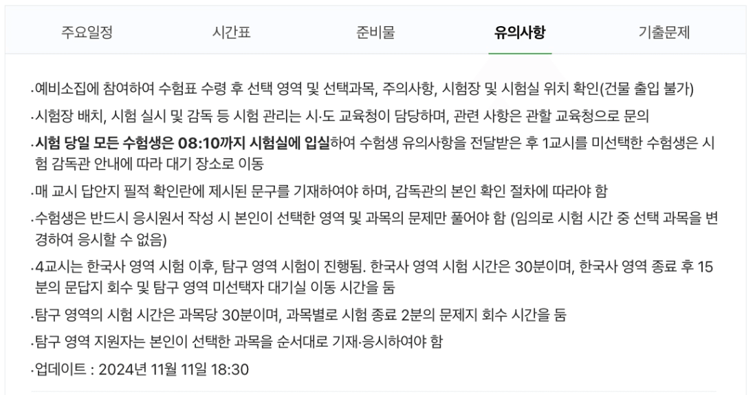3.2025학년도 수능 유의사항