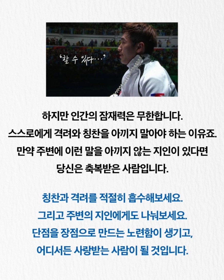 칭찬과 격려가 가지는 힘이 한 사람의 인생을 바뀌게 만들기도 한 중요한 부분이라고 생각이 드네요