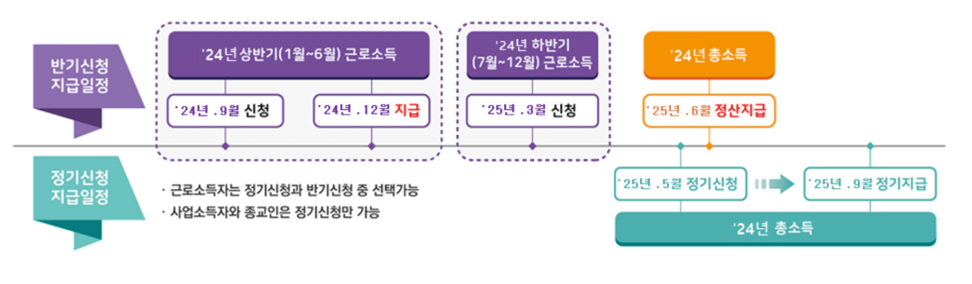 정기 신청 기한은 이미 지났습니다. 2024.03.01~2024.03.15에 이미 진행하여 6월에 근로장려금 지급이 완료 되었는데요. 이후에 기한 후 추가 신청 기한이 2024.06.01~2024.11.30 입니다 (아직 안 끝났네요)
