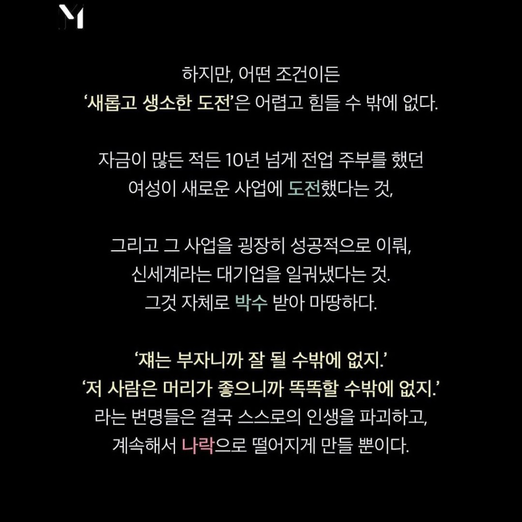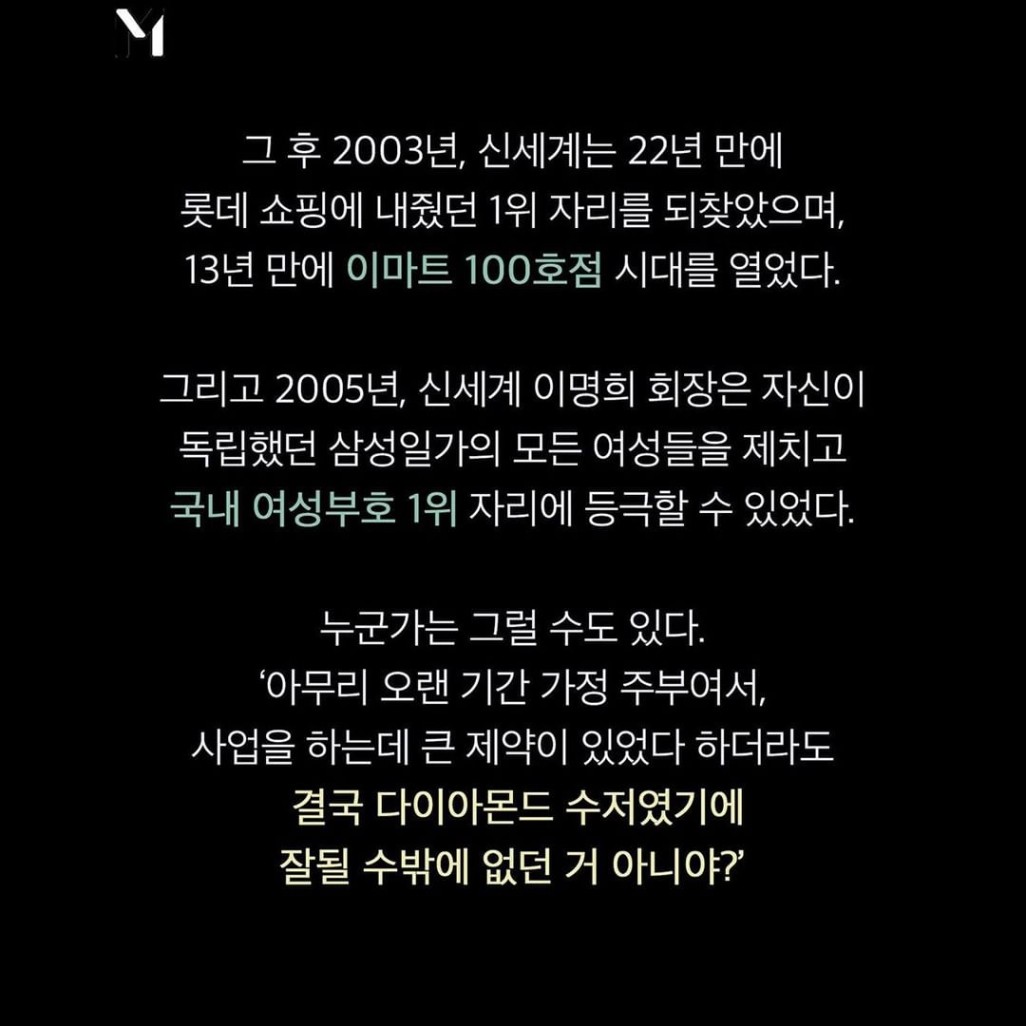 이명희회장이 다이아수저라 이 모든 걸 이뤘다기보다 불가능도 할 수 있다는 마음으로 임했기에 이마트가 100호점까지 열 수 있었을겁니다