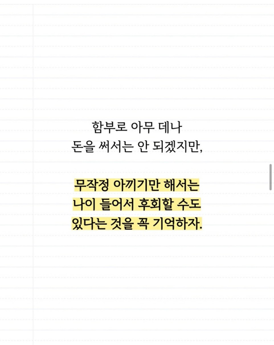 젊었을 땐 오로지 입고 먹고 하는 것에 소비가 많았었는데, 지금 돌이켜보면 교양이나 지식을 쌓기 위해 더 했었더라면 하는 아쉬움이 남더라구요 ~