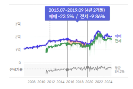 5년동안 매매가 전세가 동시에 하락하는 경험도 맛봅니다
