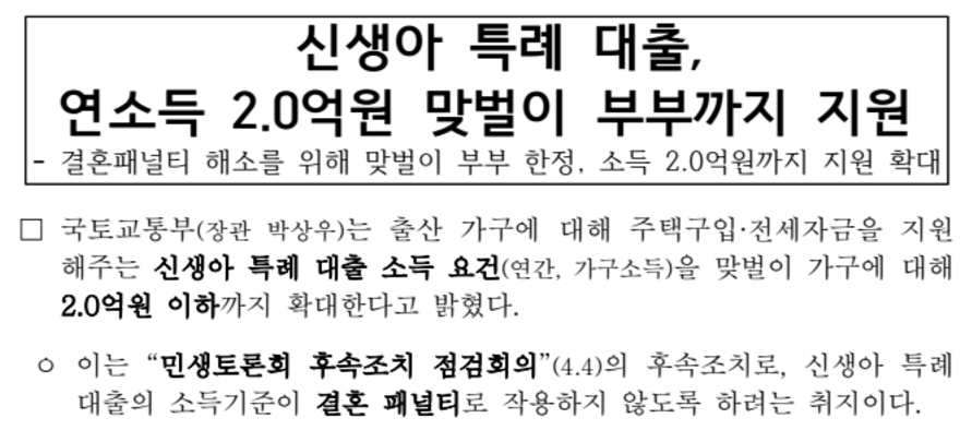 2. 신생아 특례대출 소득 요건 완화