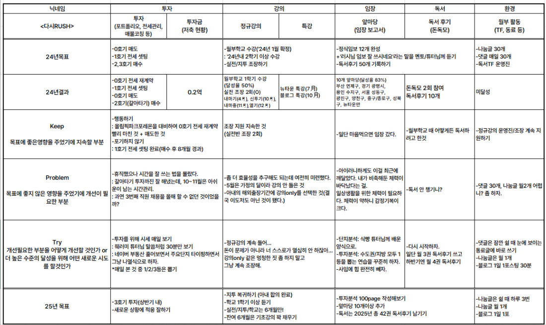 [다시RUSH] 24년 복기 및 25년 계획(KPT) (12월 계획 포함)