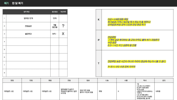이미 중간복기에서 전임이랑 수면습관이 문제여서 고치려고 노력하였는데요.