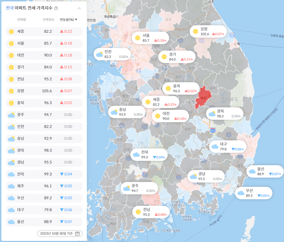 [30억부쟈] 전국 전세가율 & 평단가 (11/02 기준)