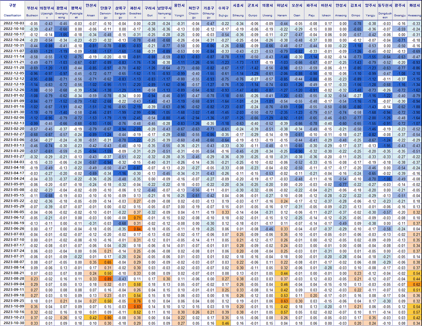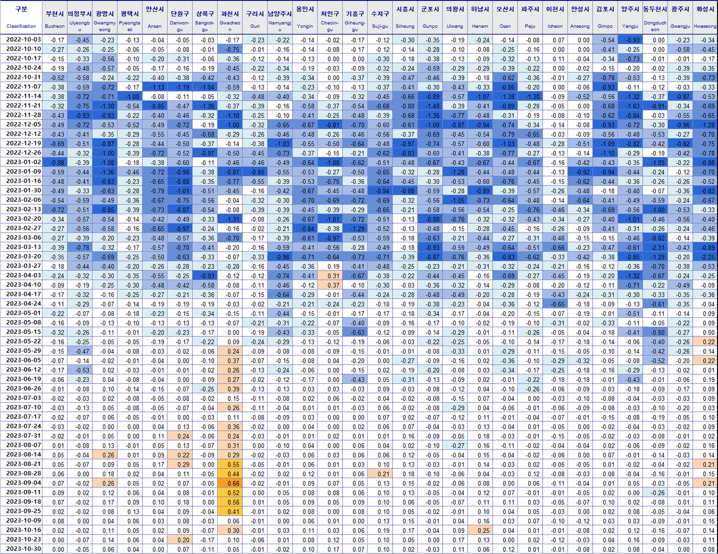 인천 동구 -0.20% 안산 상록구 -0.18% 동두천 -0.10%