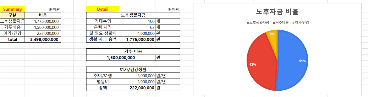 필요한 노후 자금 합계 ▶ 총 34억 9천 만원