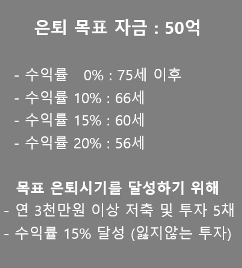 - 500만원 X 12개월 X 40년(은퇴 이후 여생)=24억