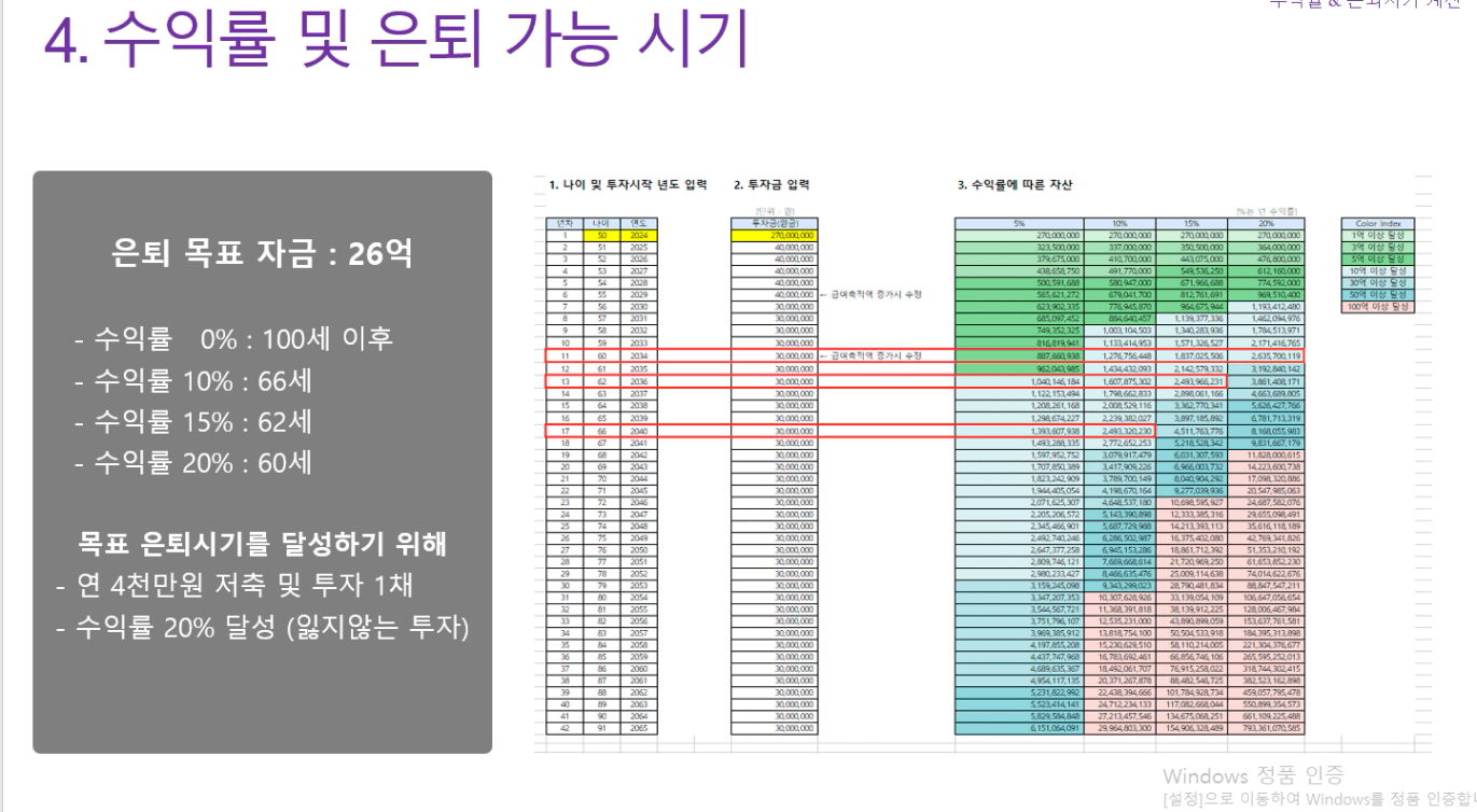 STEP4. 수익률에 따른 은퇴 가능 나이
