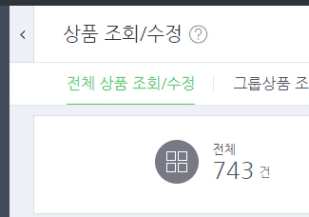 현재까지 스마트스토어 상품 등록 된 제품은 743개입니다.