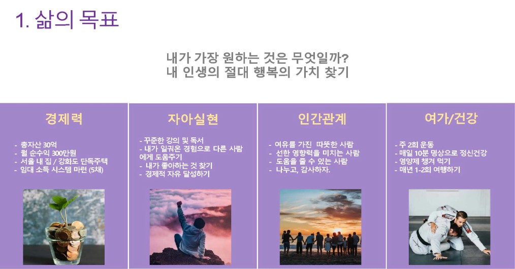 비전보드를 하나씩 채우며, 그동안 나의 삶의 되돌아 보는 시간을 갖게 되었습니다.