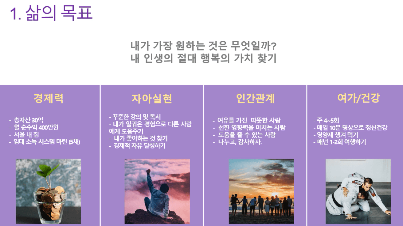 열기의 하이라이트가 비전보드인 것 같아요. 작성하기 어려운만큼 인생의 나침반이라고 할 수 있을 것 같아여~ 내 목표를 정했으니 그 곳을 향해 달려가봐여!!! 화이팅!!!