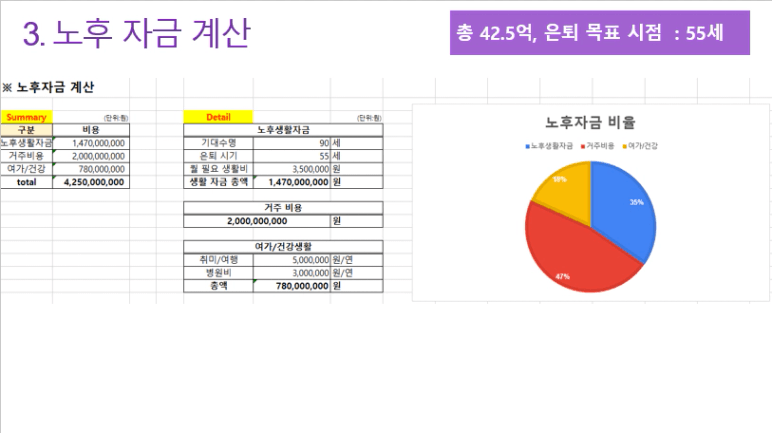 필요한 노후 자금 합계 ▶ 총 42억 5천 만원