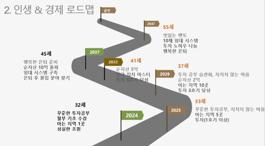 비전보드 실현을 위해 5년 단위로 20년 계획을 세워봅시다. (2025/ 2030/ 2035/ 2040/ 2045년)
