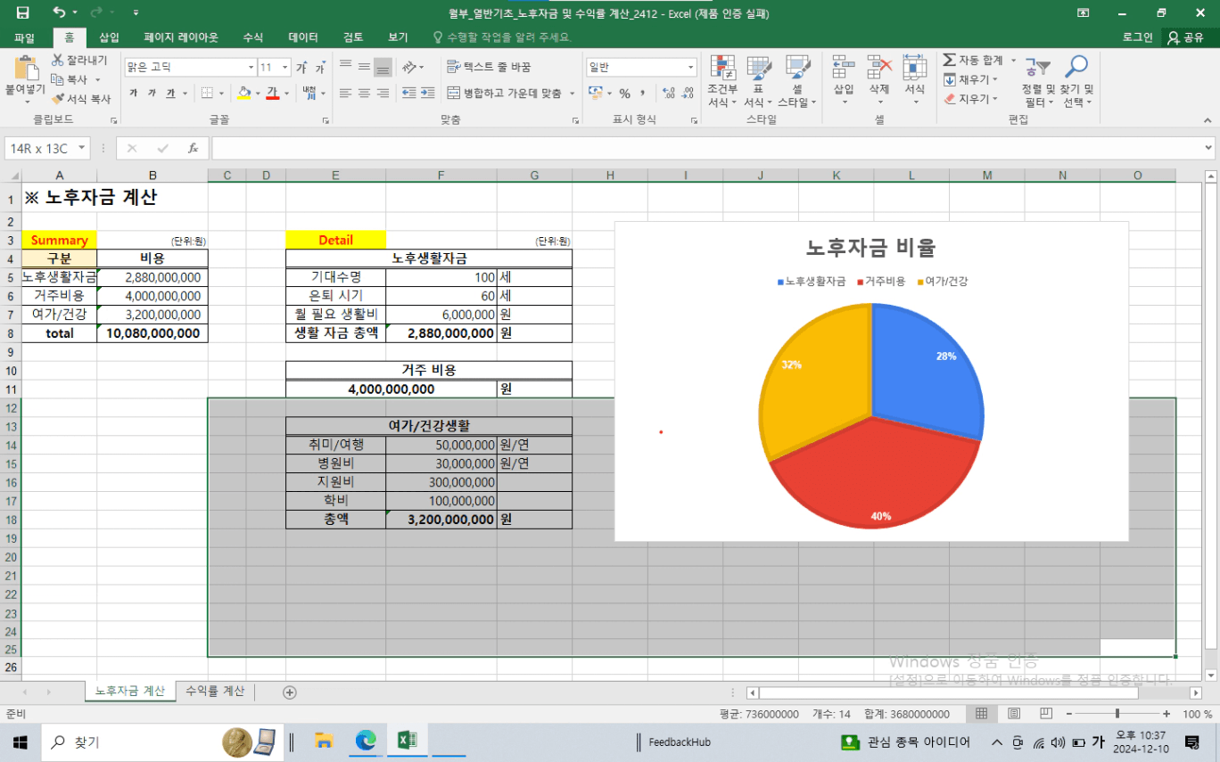 그런데 엑셀, 계산 해보니까, 아무리 줄여도 100억이 나오는거예요 ㅠㅠ