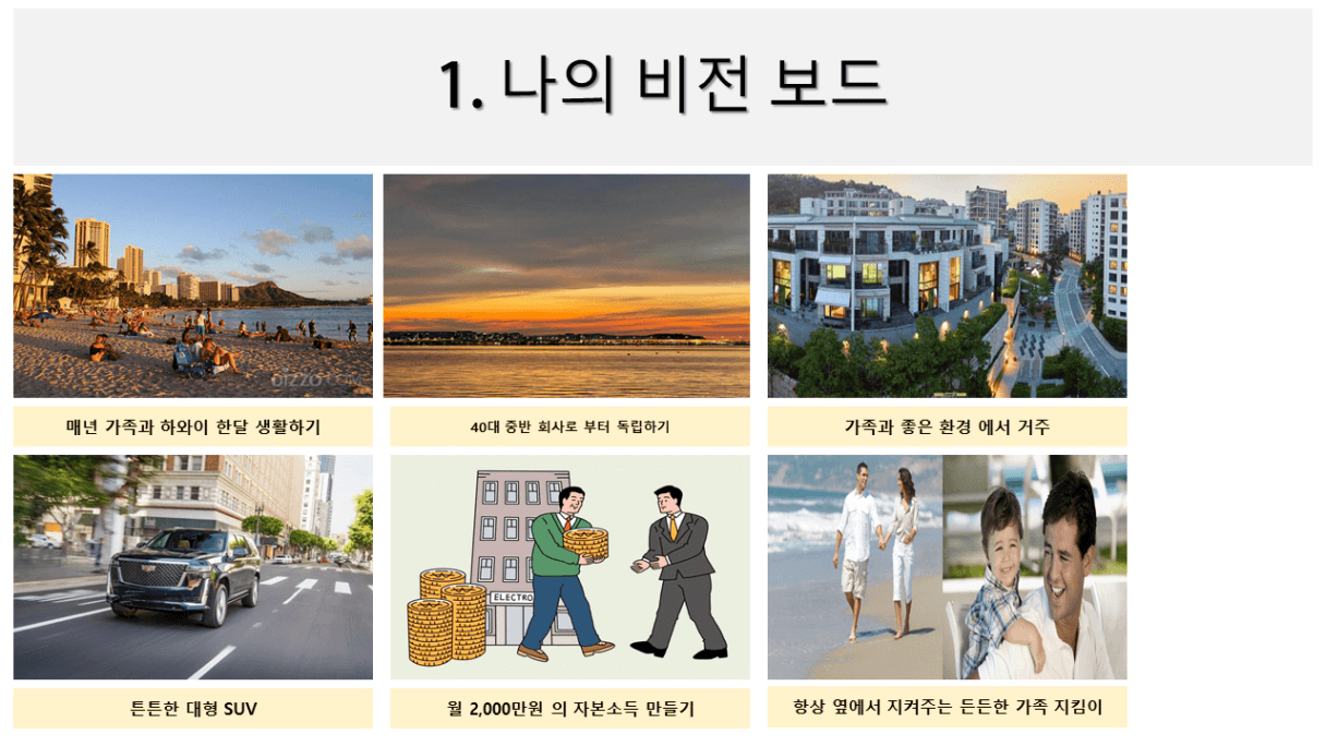 제 인생강의인 열기에서 가장 중요한 하나를 뽑으라면 바로 이 비전보드이더라구여. 앞으로도 두고두고 이정표가 되어줄 비전보드~ 꿈 모두 이루시길 응원할게여!!홧팅!!
