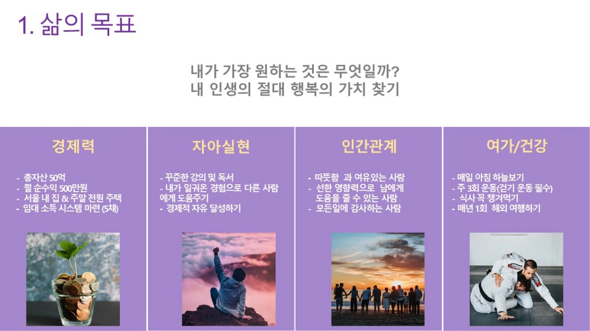 제 인생강의인 열기에서 가장 중요한 하나를 뽑으라면 바로 이 비전보드이더라구여. 앞으로도 두고두고 이정표가 되어줄 비전보드~ 꿈 모두 이루시길 응원할게여!!홧팅!!
