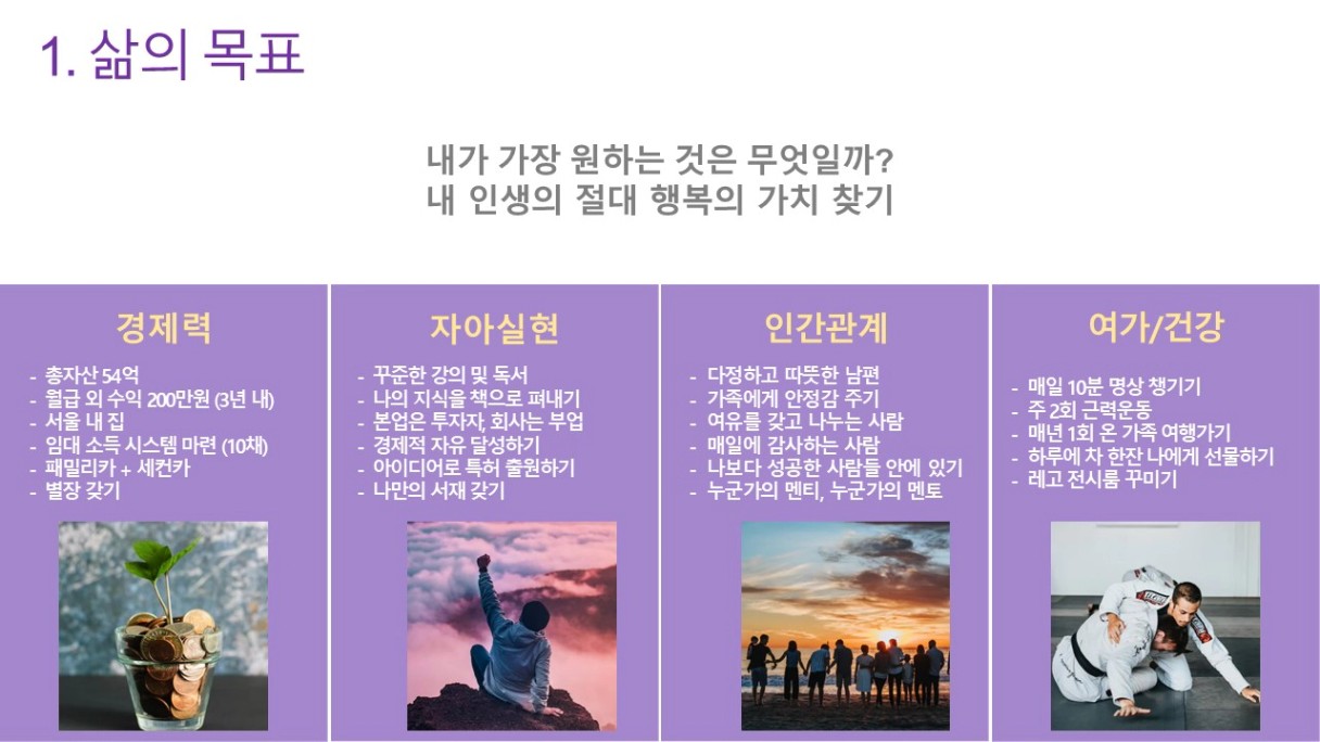 인생강의!!!인생과제가 열기와 비전보드라고 생각합니다. 비전보드 작성하느라 넘 고생하셨어요~ 여기에 그린 꿈 모두 이루시길 응원하겠습니다!!!!