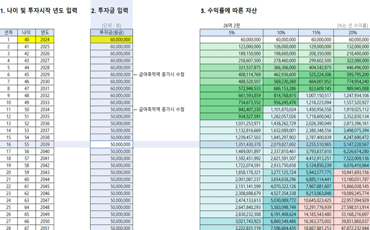 - 수익률 15%: 54세 (2038년)