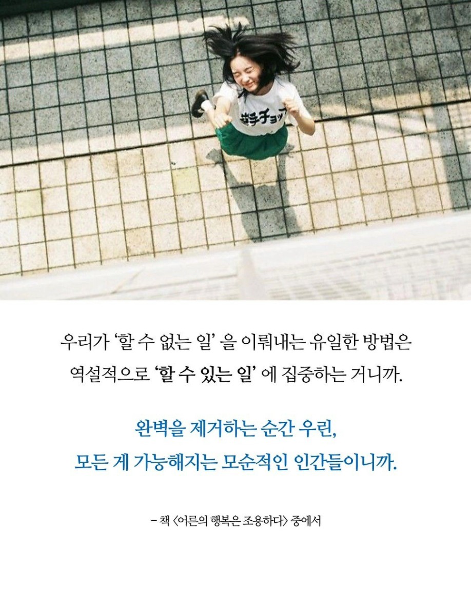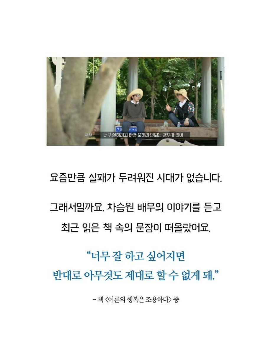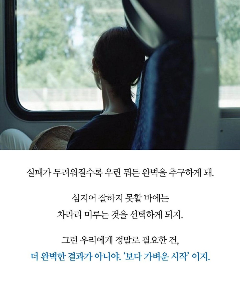 "우리, 너무 잘하지 말자" 너무 공감이 가는 부분인데요 항상 잘하려고 하다보니 반대로 아무것도 제대로 할 수 없는 마음이 생기곤 하는데요