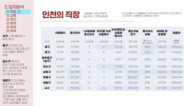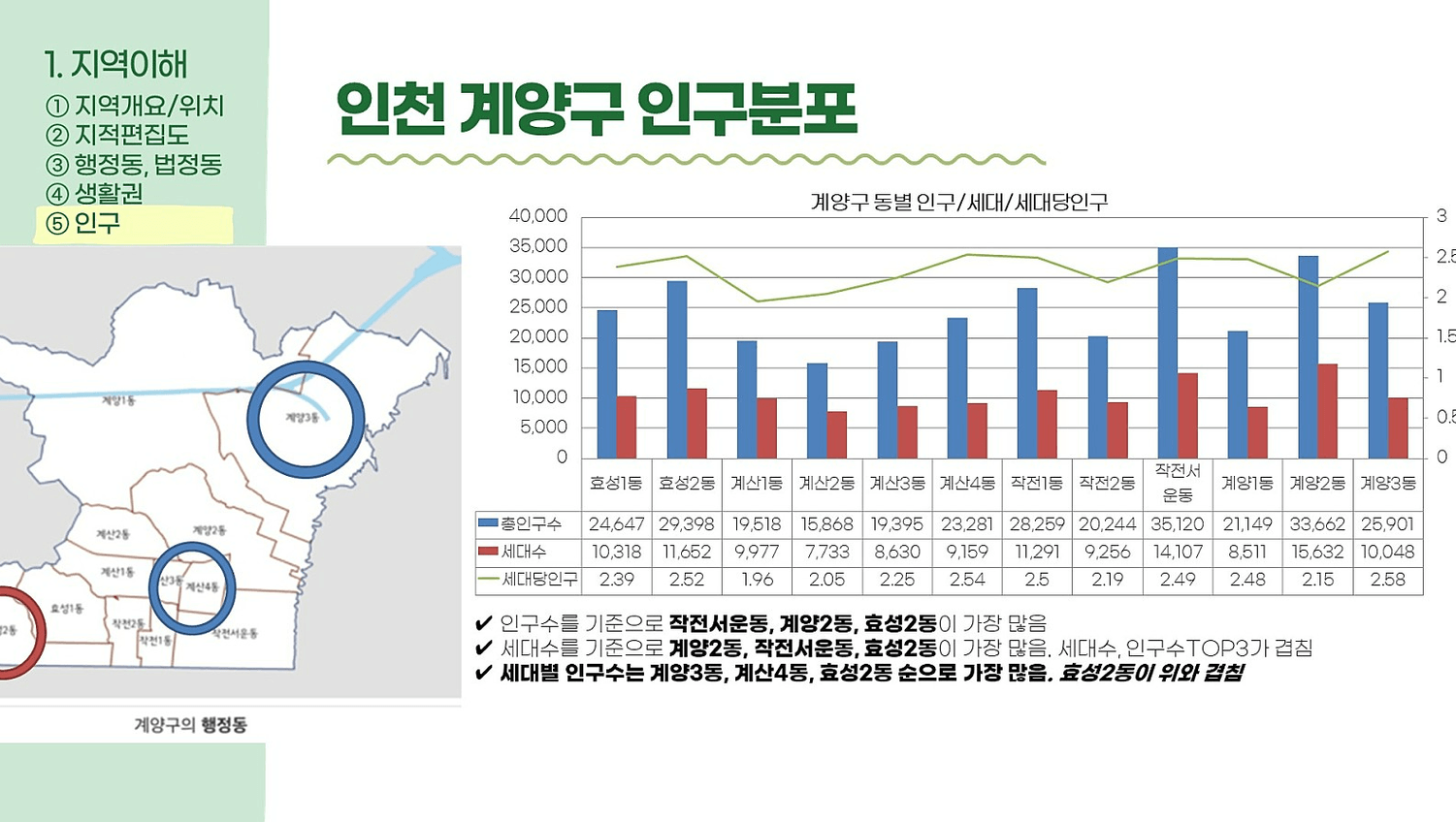 지역 이해, 인구, 직장, 학군, 환경,