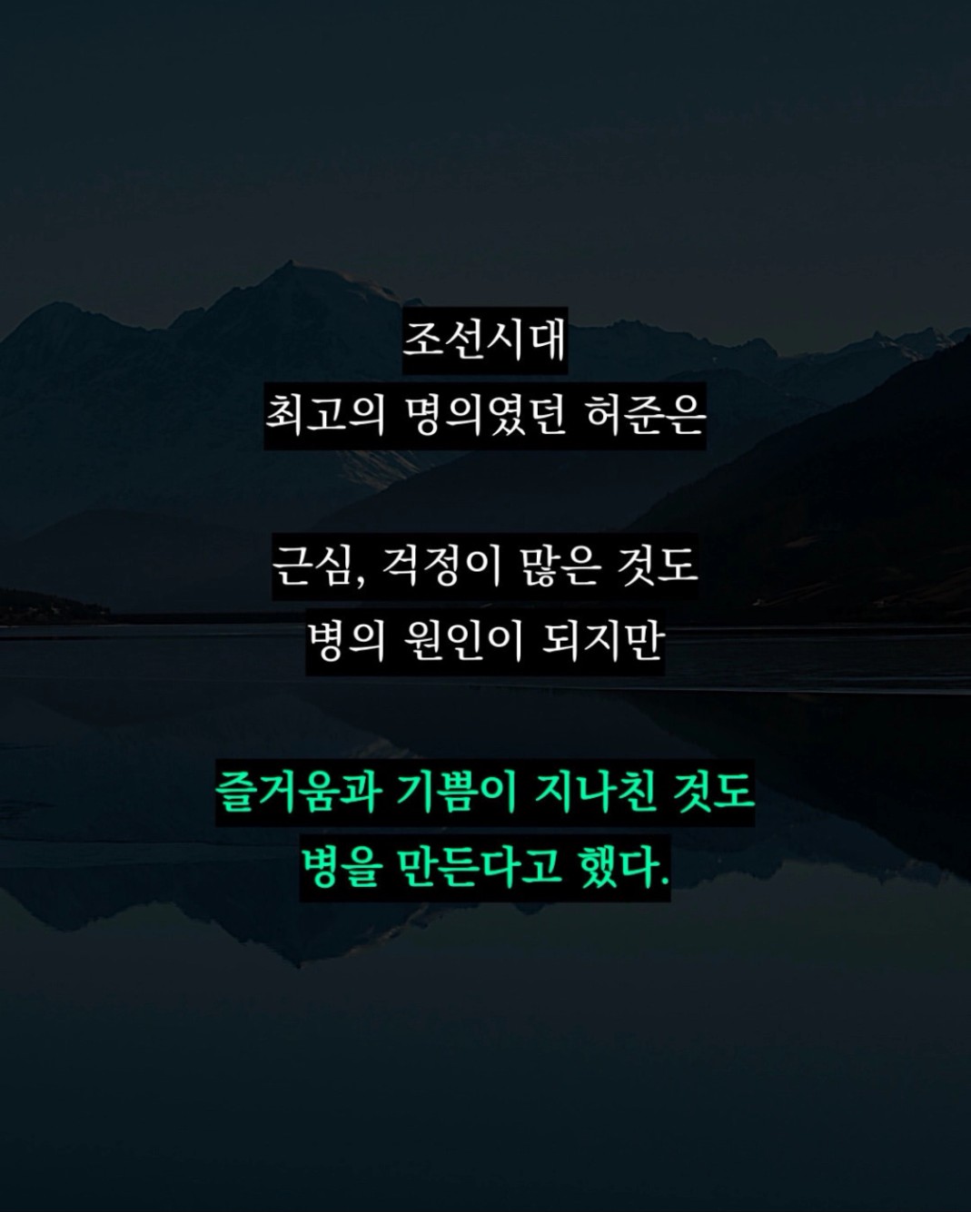 근심 걱정뿐만 아니라 즐거운과 기쁨이 지나친 것도 병을 만든다는 사실