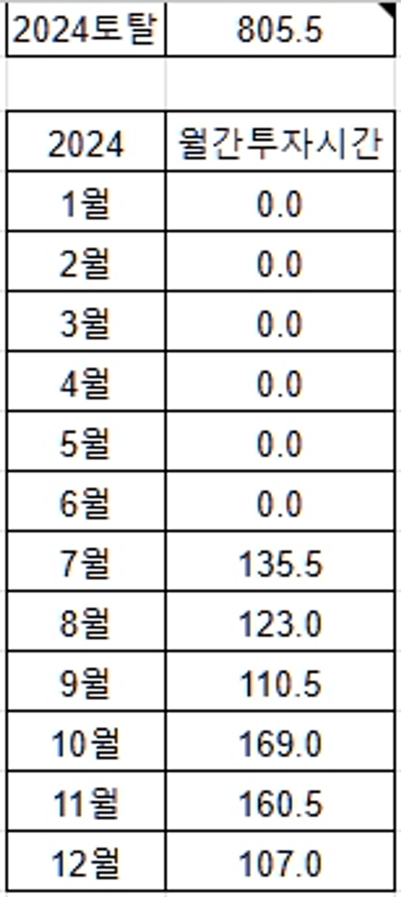 (2024년 1월부터 6월까지는 투자 시간을 집계하지 않았다.)