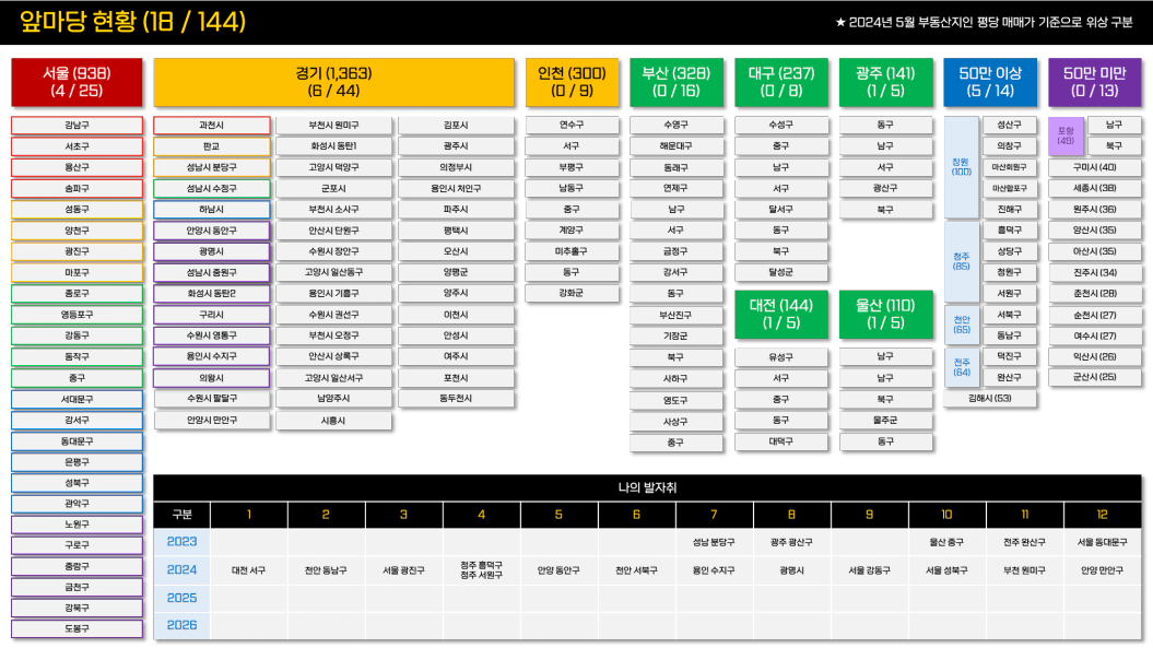 → 2025년 12개의 앞마당 추가 : 부산, 대구와 같이 지방 광역시 중 좋은 지역부터 임장한다.
