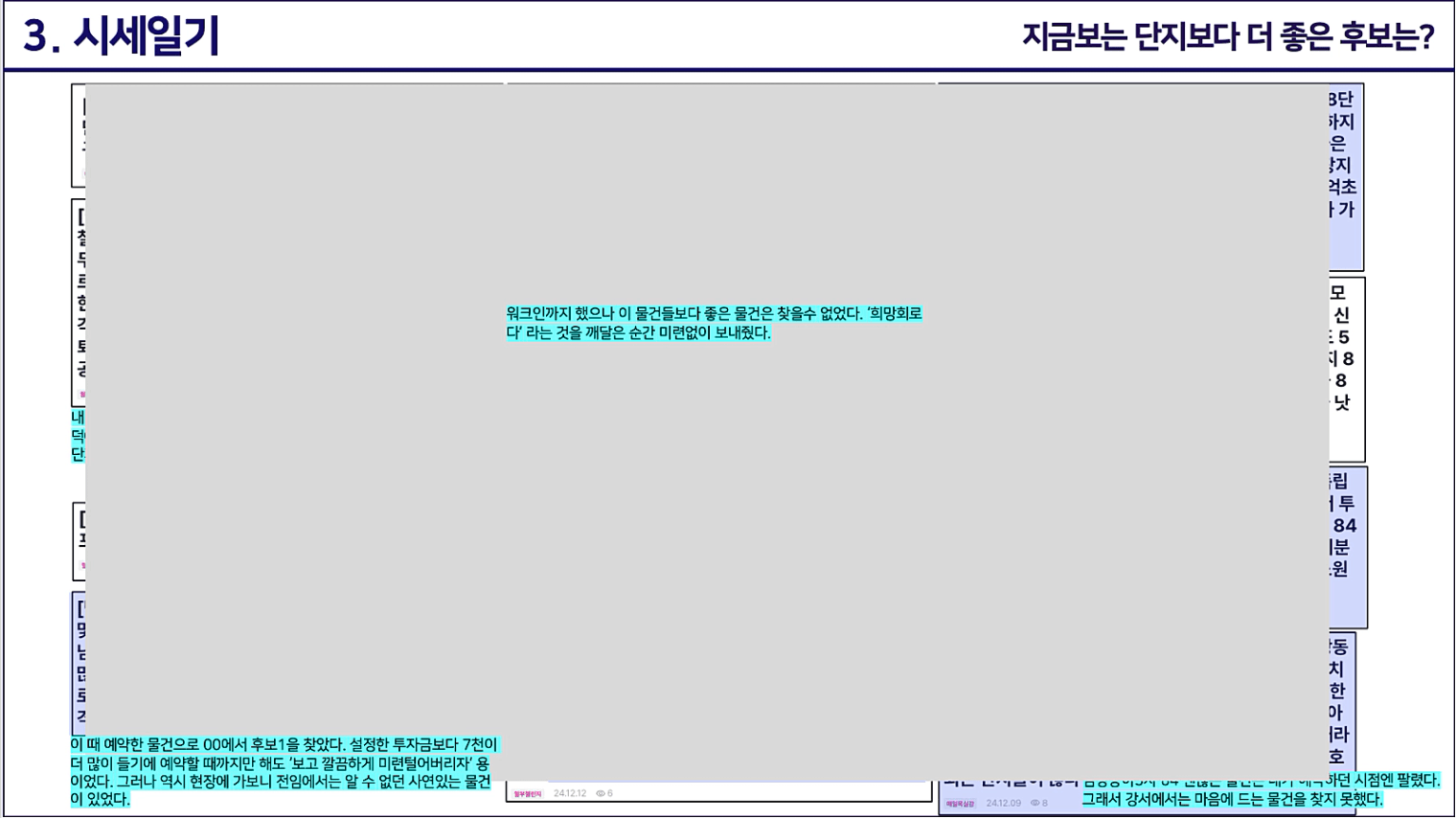 눈에 띈 단지와 비슷한 가격대의 다른 단지를 가져와 가치를 비교해보기도 하고,