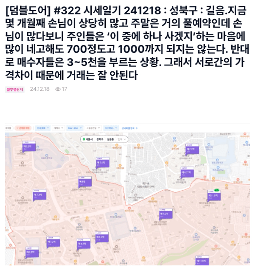 그날 본 지역 시세의 전반적인 흐름을 정리하기도 하고,