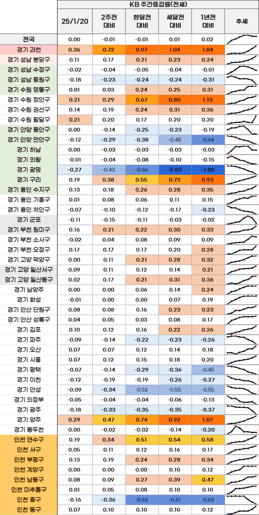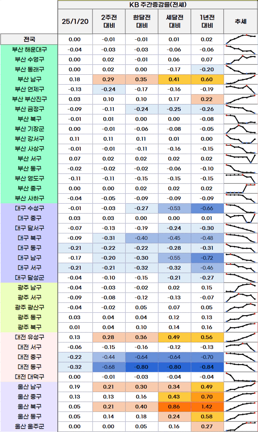 이번 주 KB 전국 아파트 주간 증감 흐름도 한판으로 정리해보았습니다.