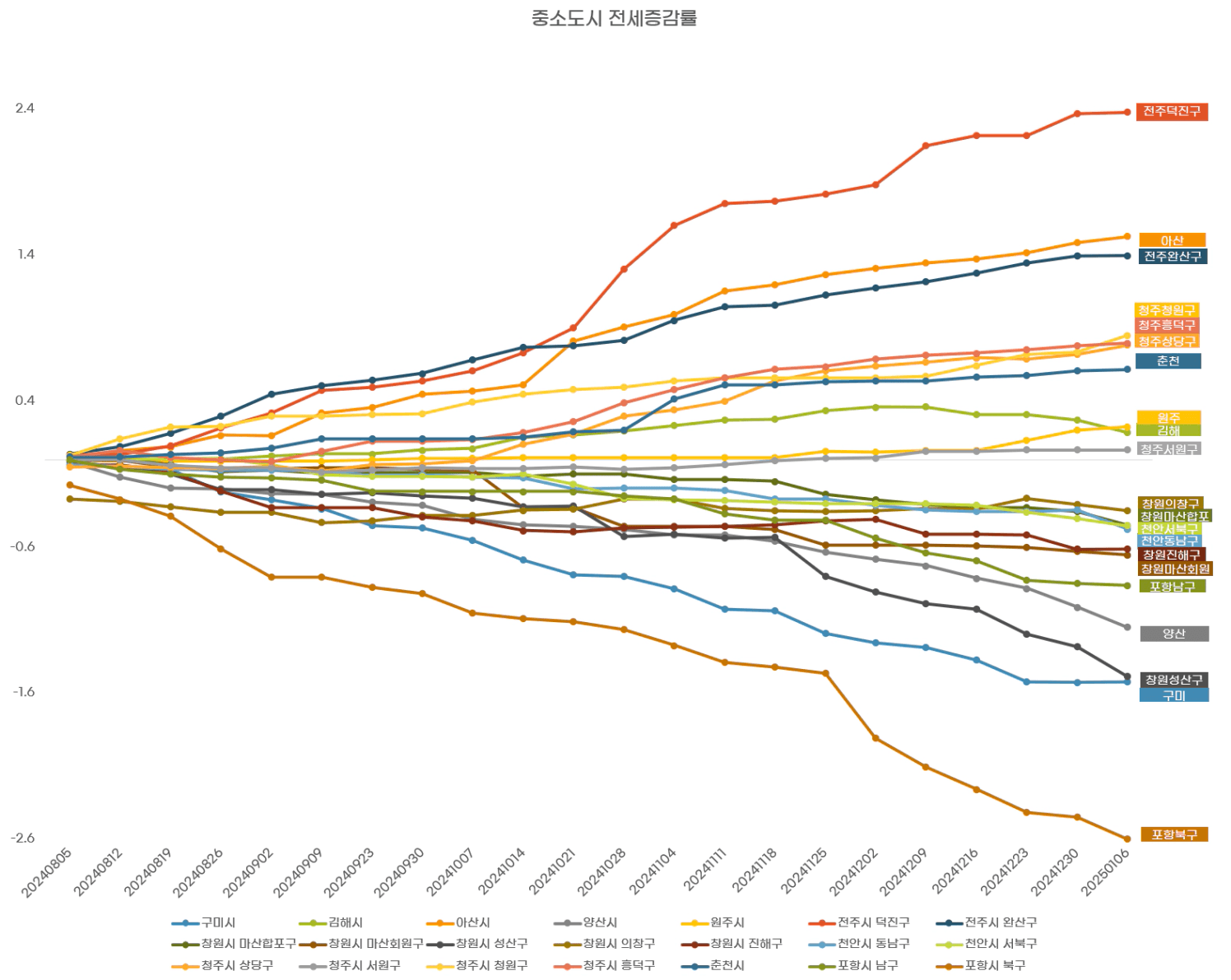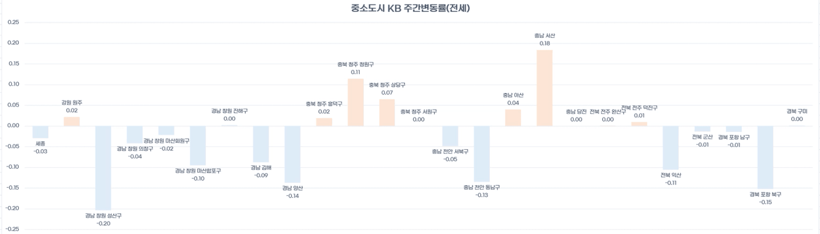 전세의 경우 전주 보합, 청주에서의 소폭 상승한 모습이고