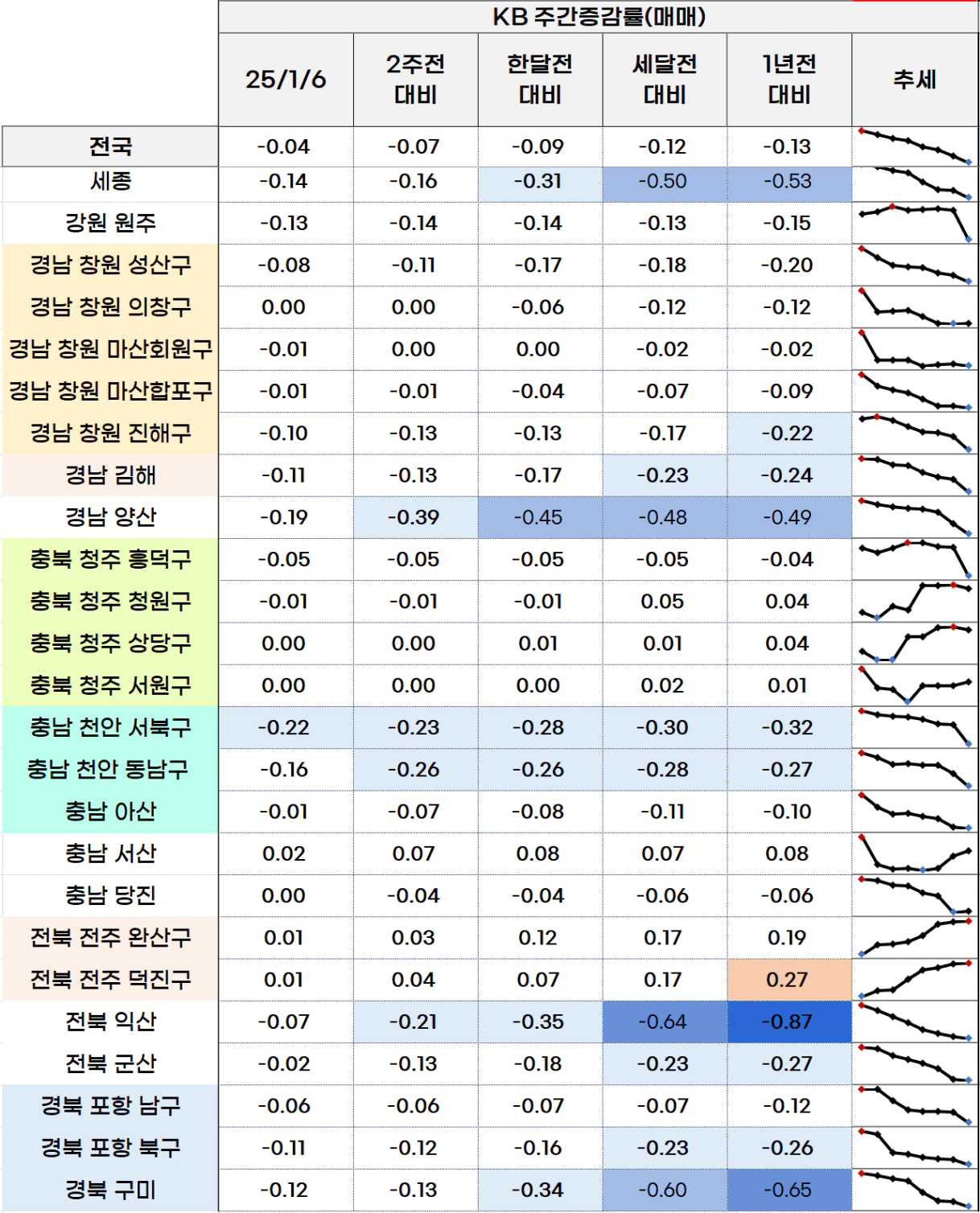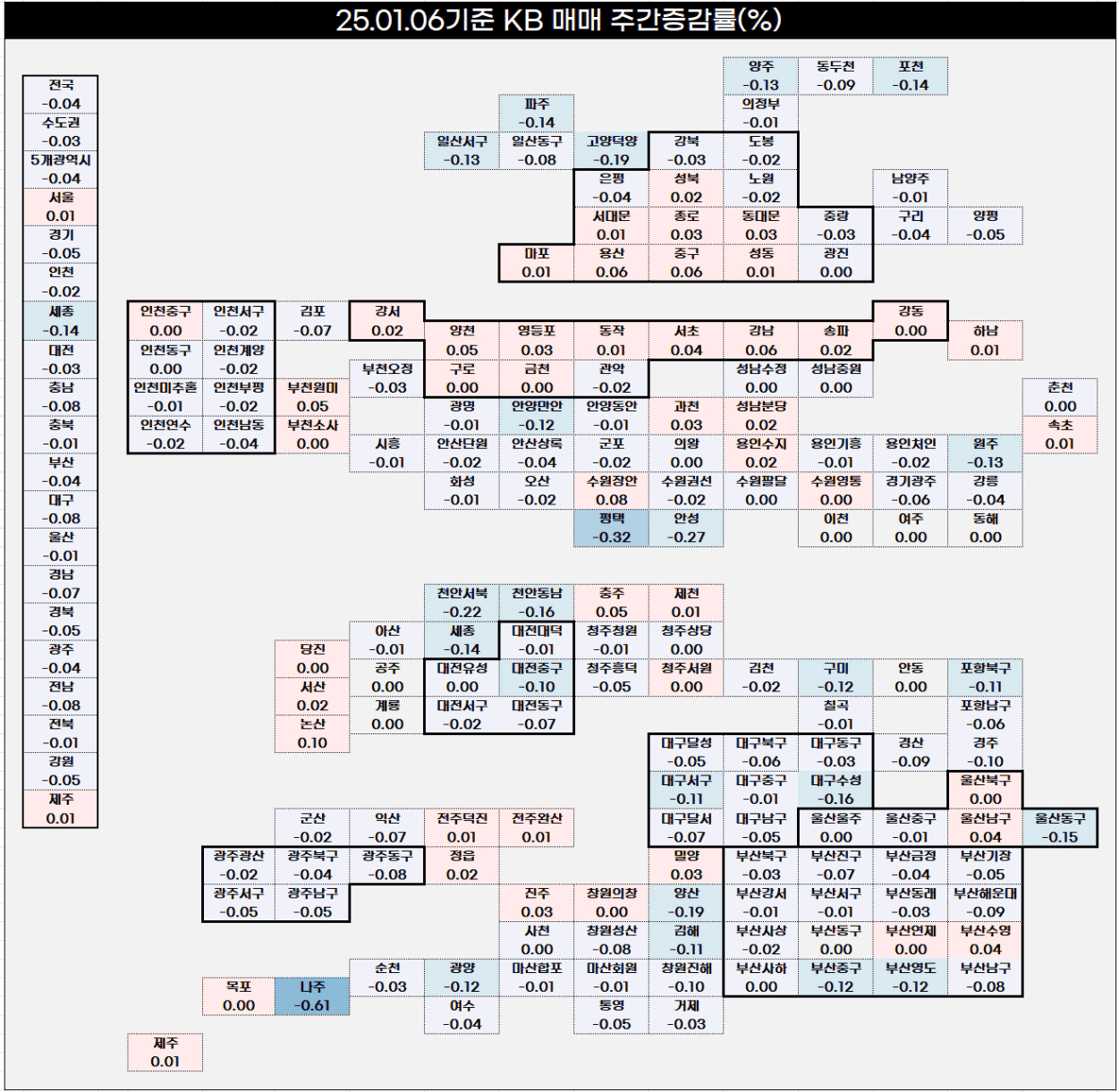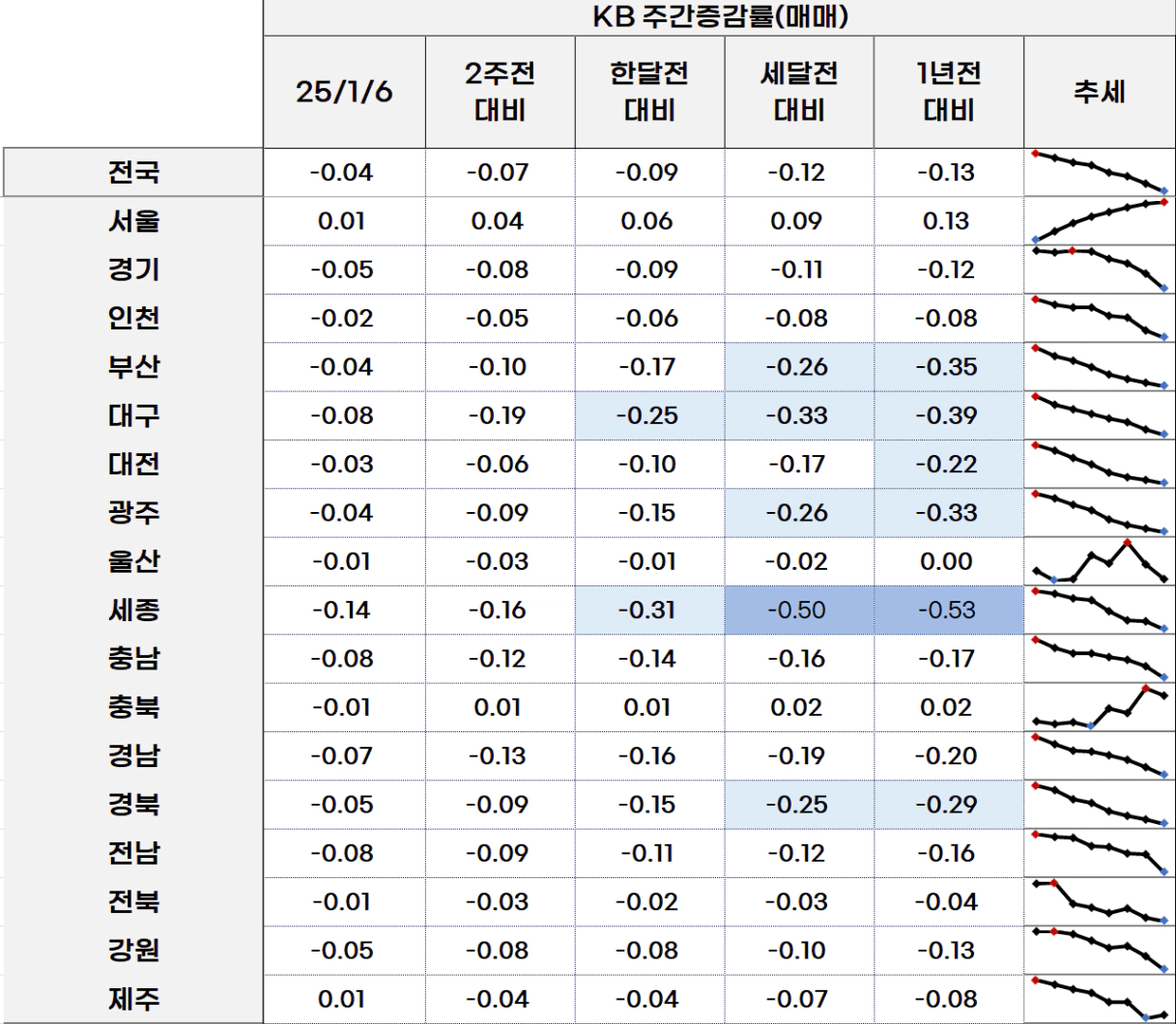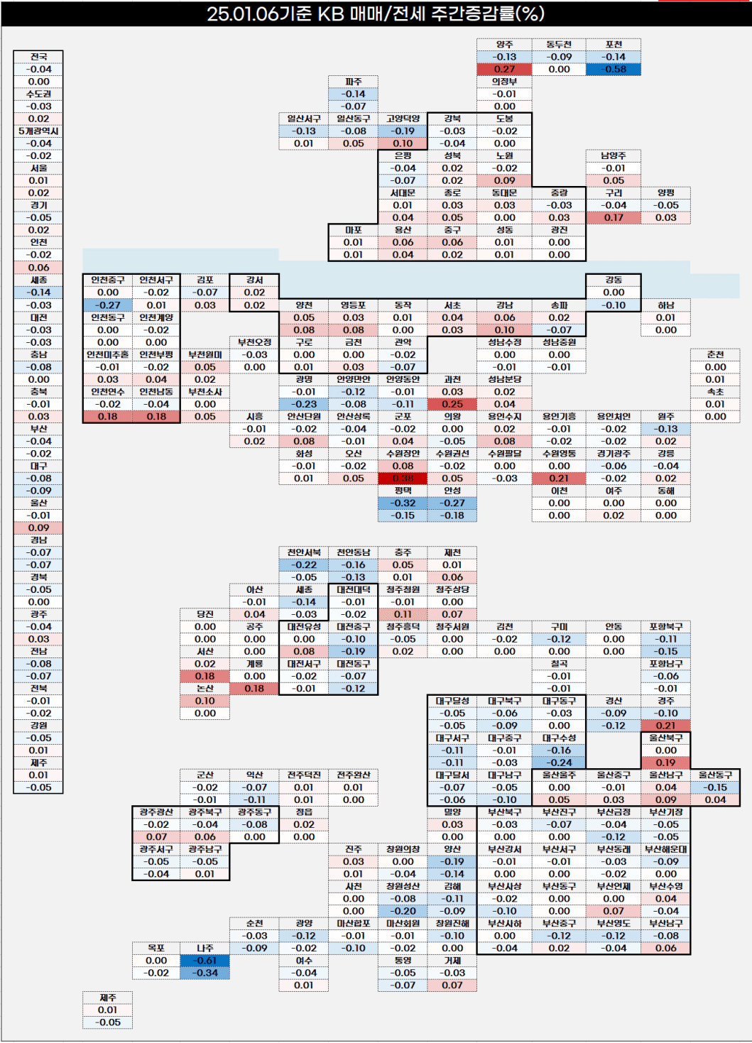 이번 주 KB 전국 주간증감률도 한판으로 정리해보았습니다.