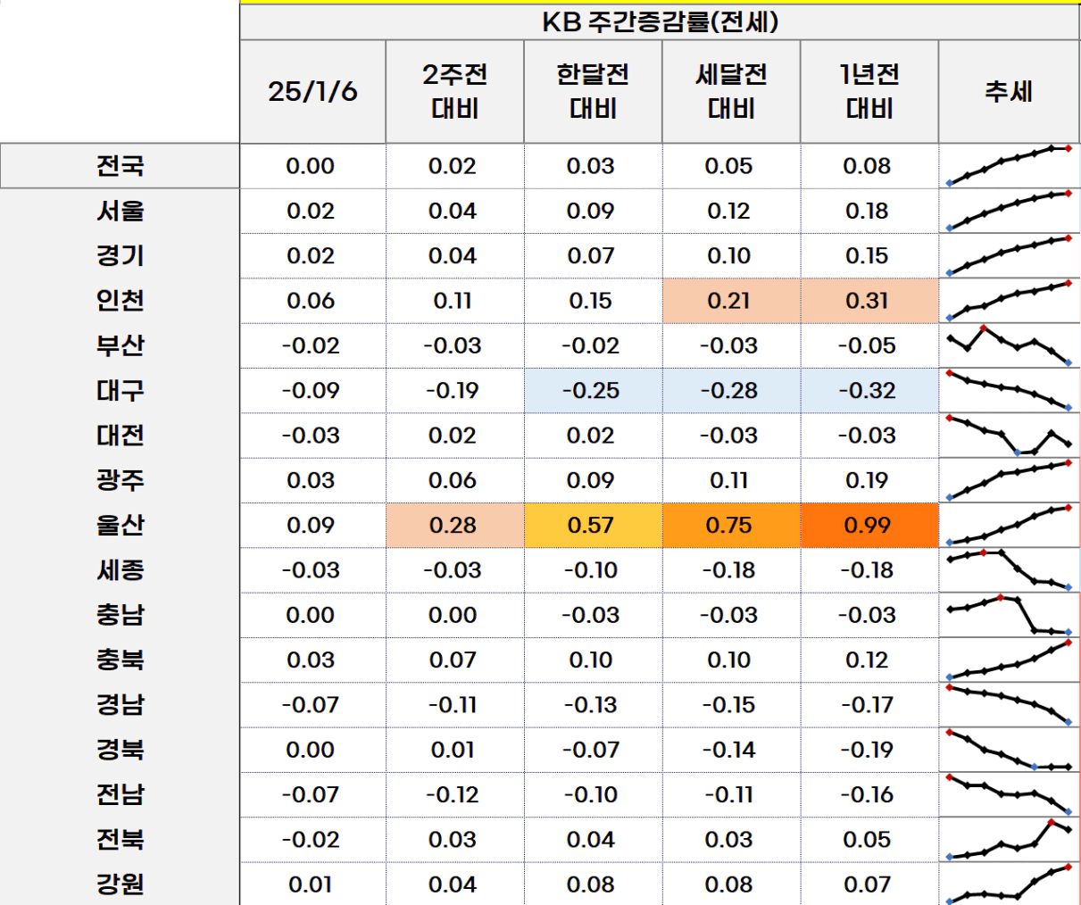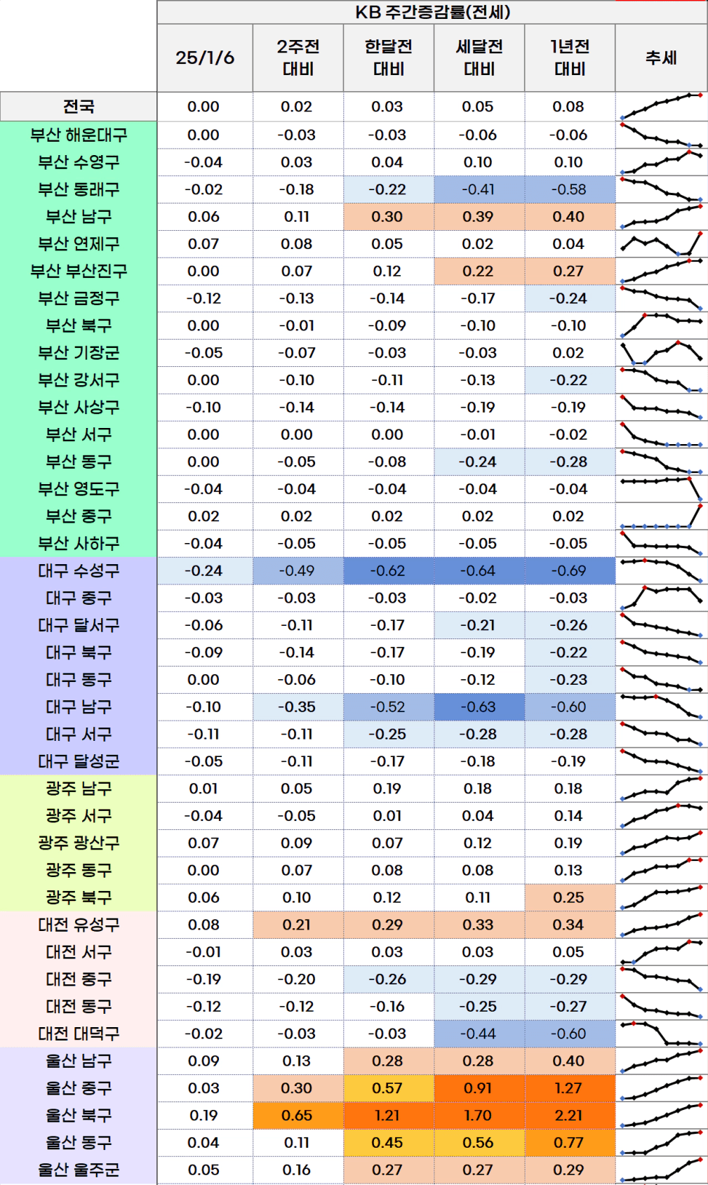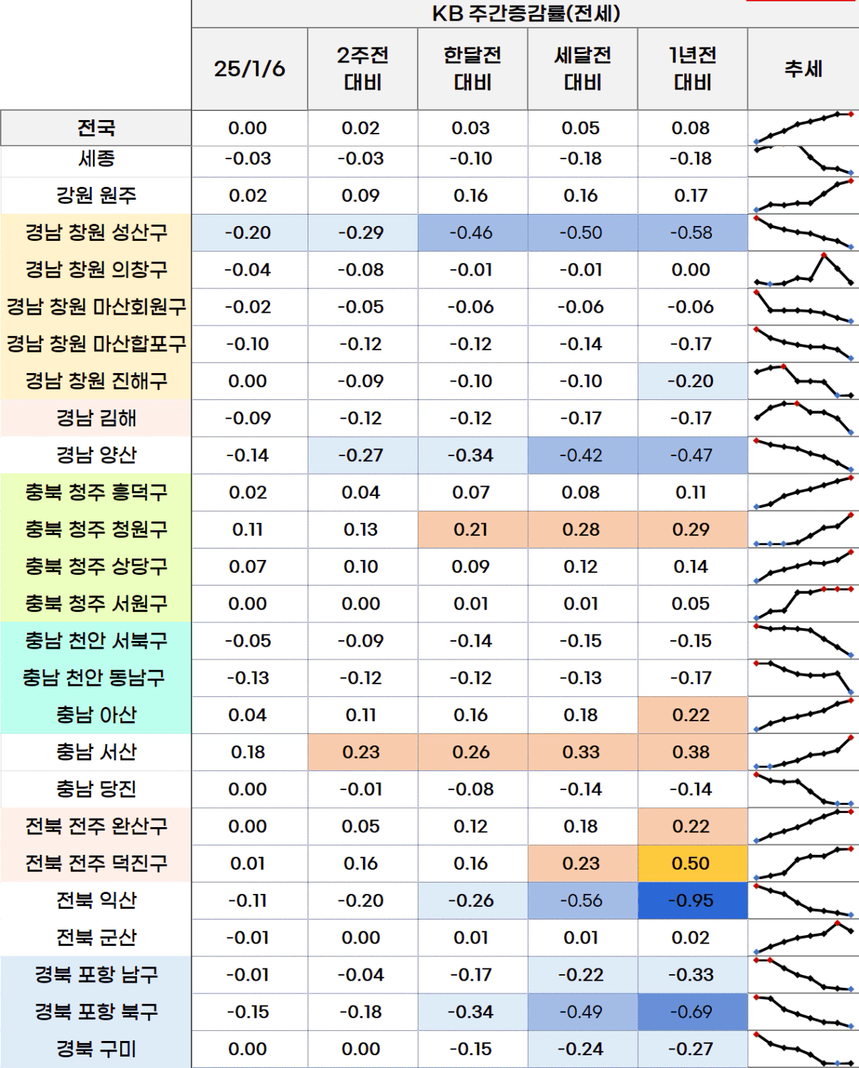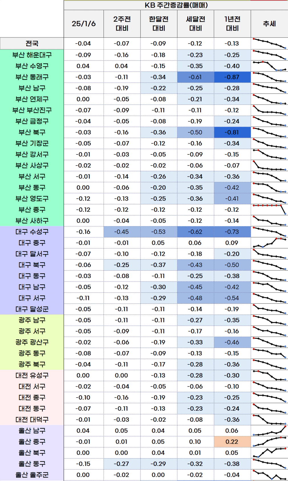 이번 주 KB 전국 주간증감률도 한판으로 정리해보았습니다.