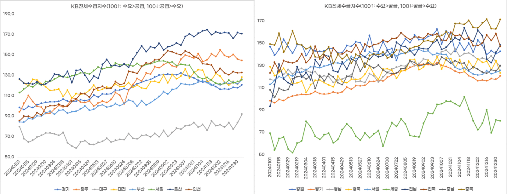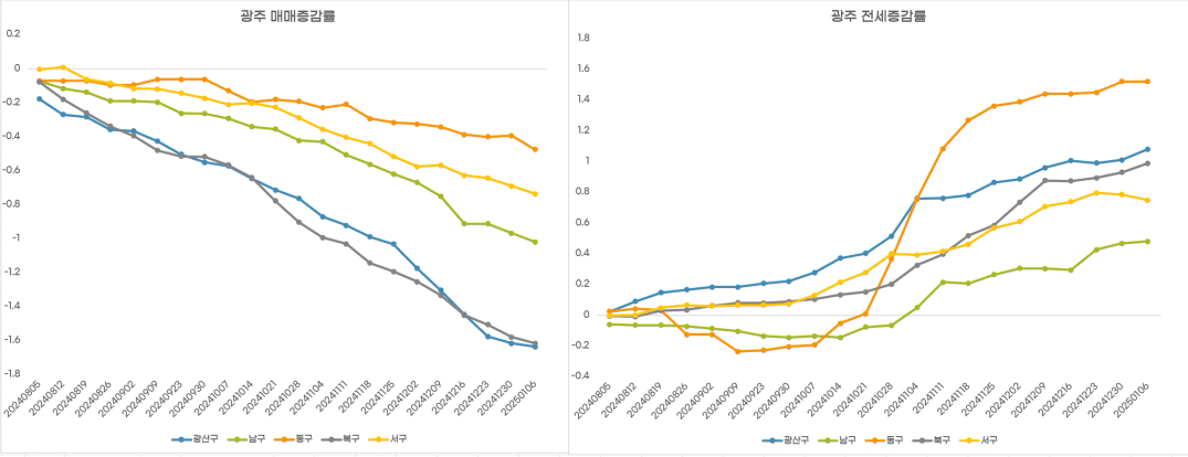전세의 경우 부산(남구, 연제구, 중구) 대전(유성구) 광주(광산구, 북구, 남구)
