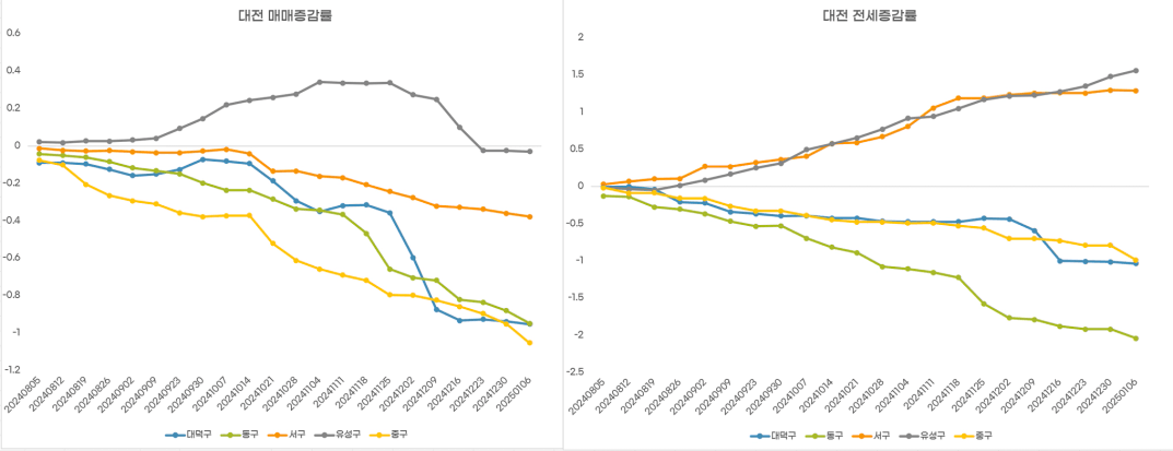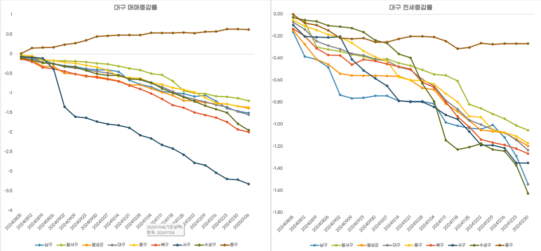 대구 수성구와 대전 중구에서 하락폭이 두드러집니다.