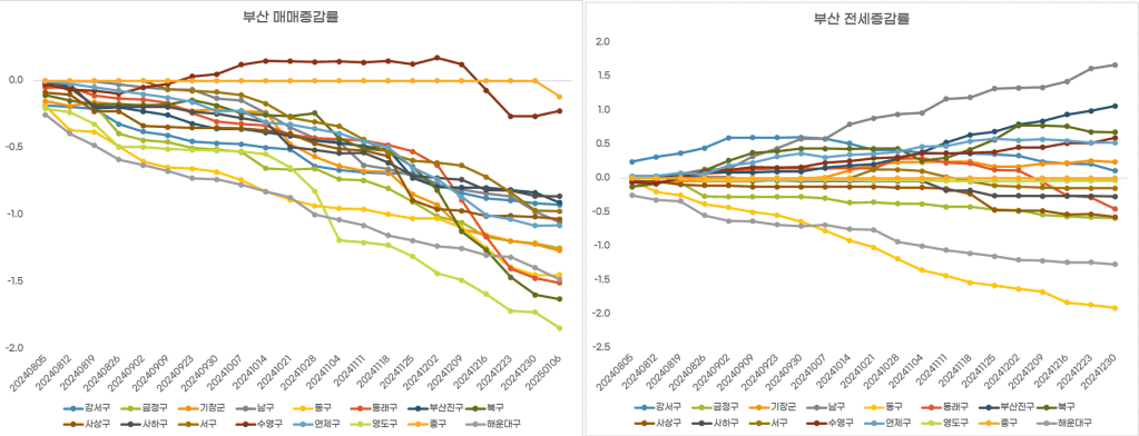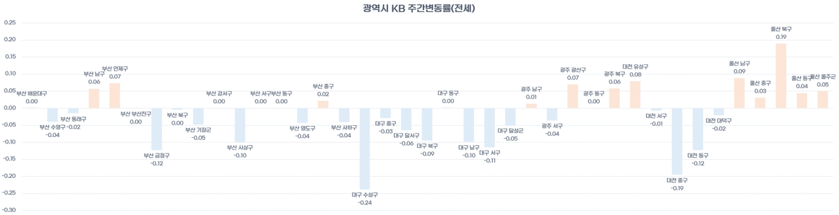 이번주는 수영구와 남구만 상승한 모습을 보여주고,
