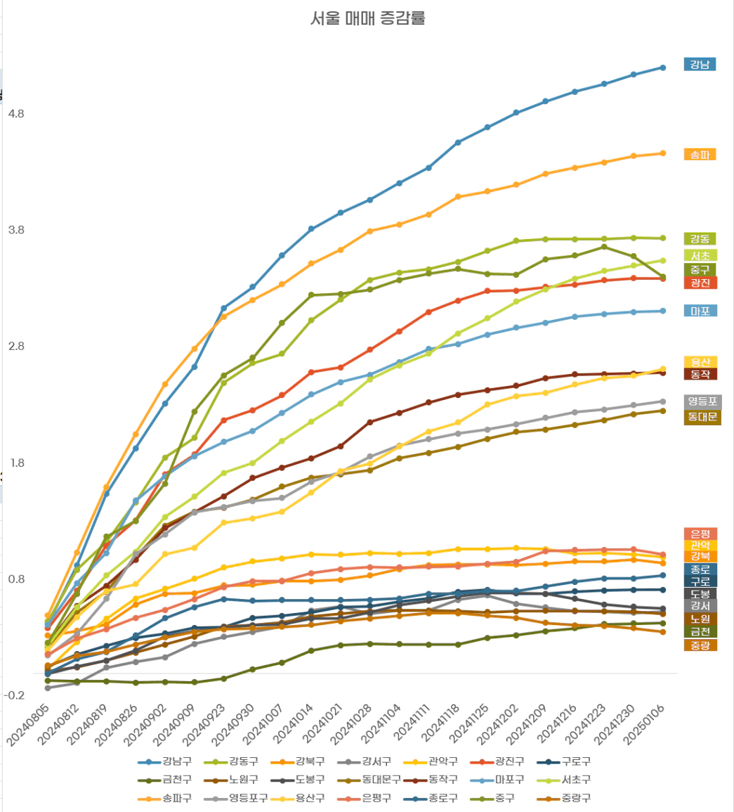 입주장인 강동구의 영향으로 송파구 또한 영향을 받고 있는 것으로 보입니다.
