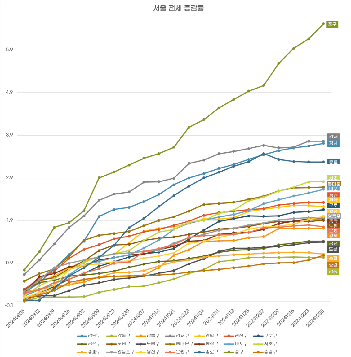 전세 또한 상승폭도 더뎌진 모습이 대부분이며