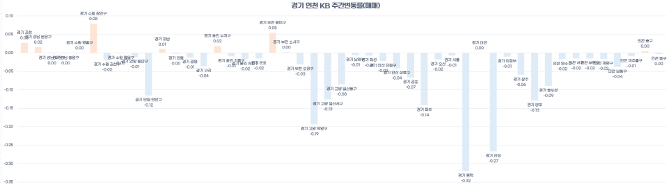 과천, 분당, 하남, 수지, 부천, 수원장안을 제외하고는 전체적으로 경기인천은 보합하락의 모습입니다.