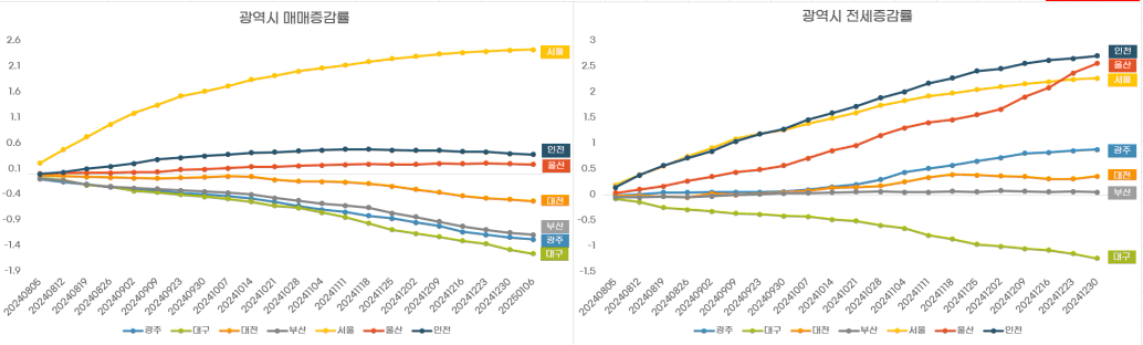 광역시 또한 보합하락의 모습을 지속적으로 보여주고 있으며