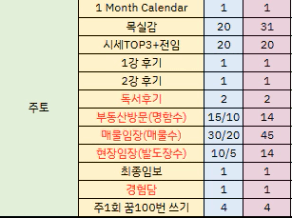 주1회 꿈 100번 쓰기 : 목표 4번 / 실적 1번
