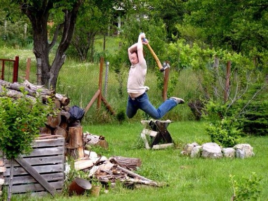 사진 속 남자처럼 장작을 팰때도 온힘을 다해서 패야합니다.