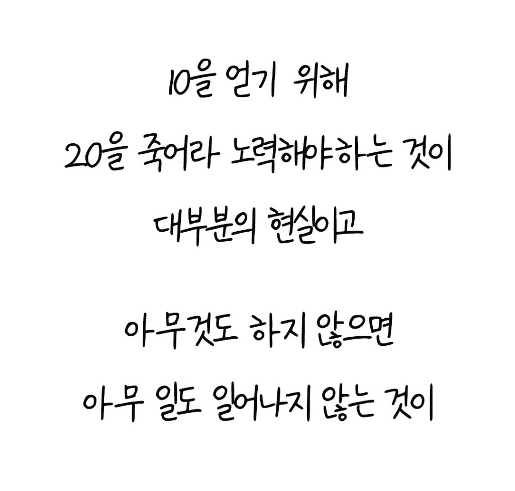 시작이 중요하다는 건 다들 아실텐데요. 그렇기에 매번 고민만하고 생각만 하면 아무 일도 일어 나지 않기 때문에 행동을 하고 생각 해보는 건 어떨까 생각해봅니다~