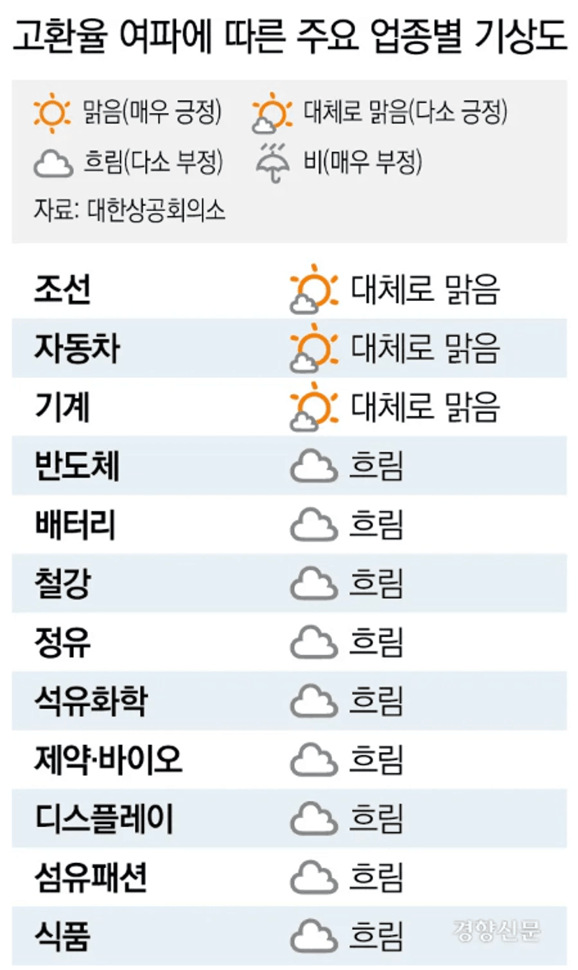 바이오·반도체·배터리·철강·석유화학·정유·디스플레이·섬유패션·식품 산업은 ‘흐림’,