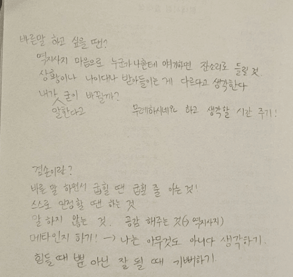 항상 생각과 말을 조심하며 공감과 인정 그리고 표현을 많이 할 수 있도록 해야겠습니다.