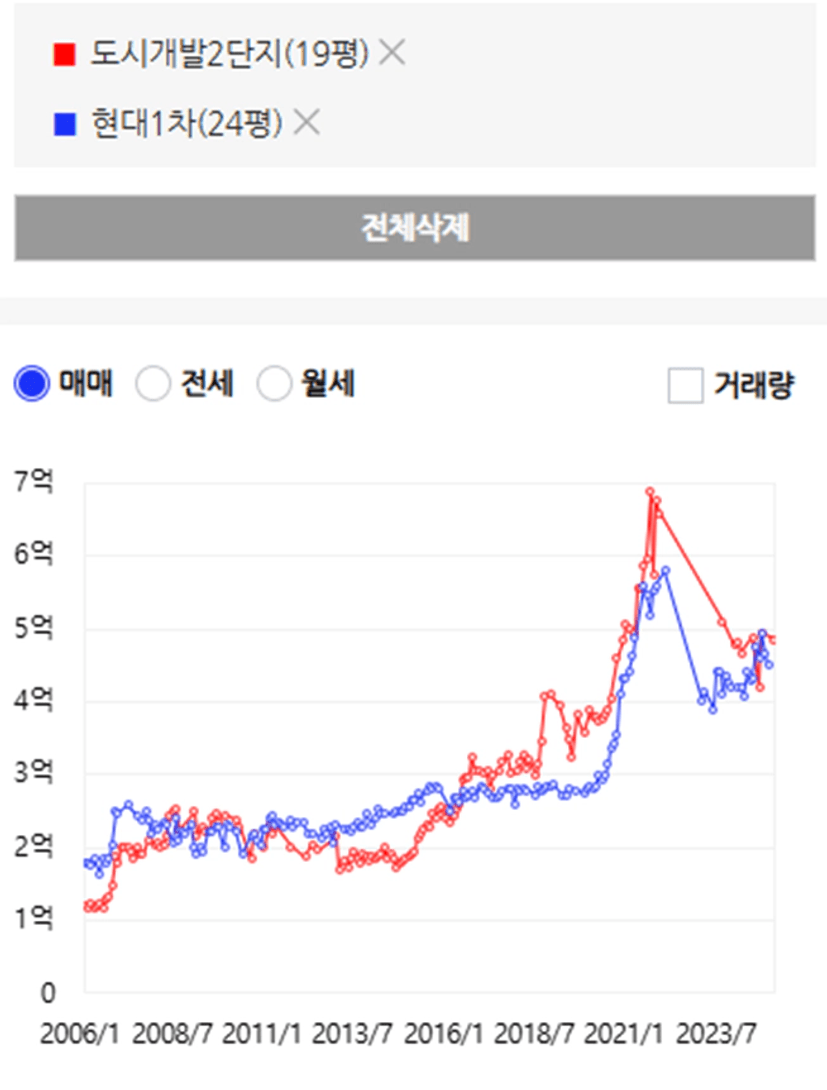 죽전동 현대1차 99년식 702세대 24평과 강서구 방화동 도시개발2단지 2547세대 20평 비교중입니다.