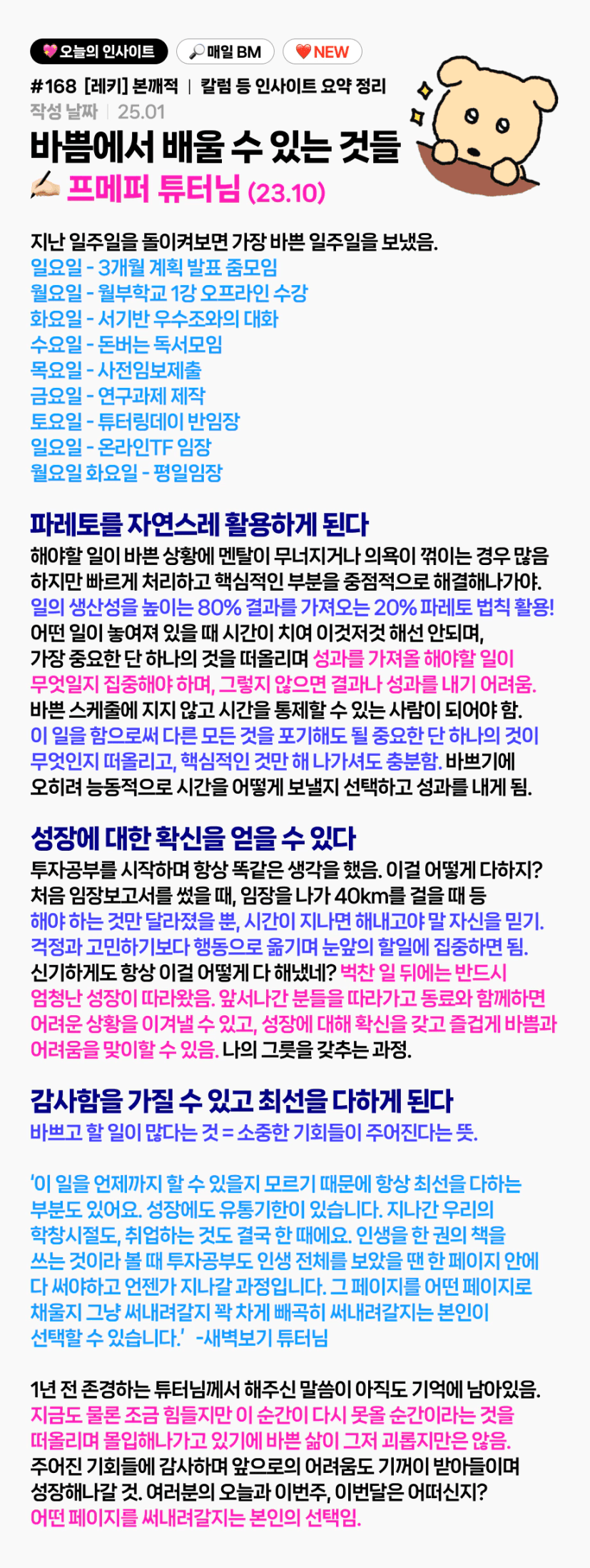 레키 칼럼요약 - 바쁨에서 배울 수 있는 것들 (프메퍼 튜터님) #168