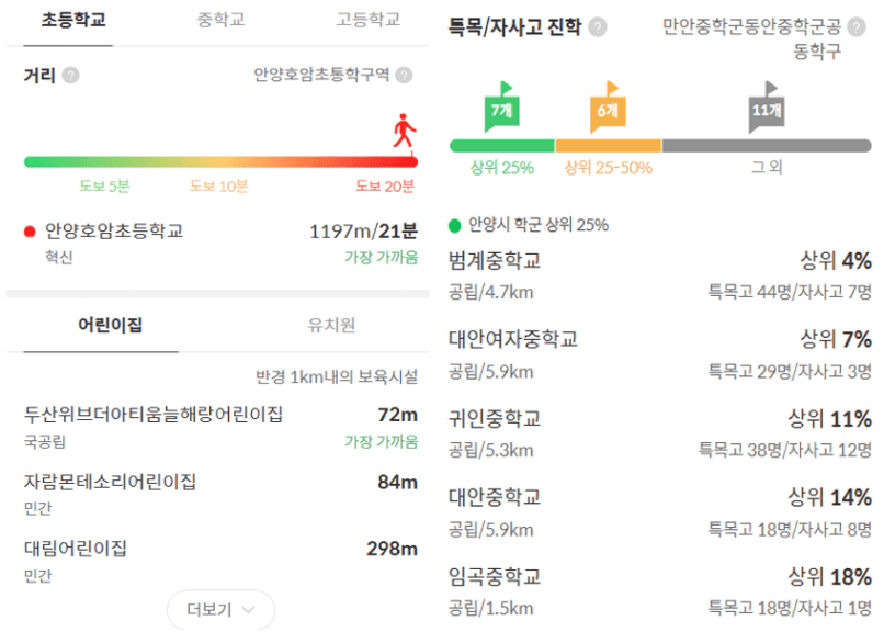 초등학교도 도보로 21분이면 많이 먼 것이 아쉽네요..